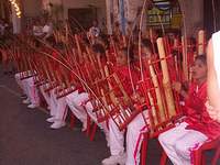 フェスティバルには、島内の中国寺院を中心として、様々な儀式があります。中でも有名なのはごうごうと燃える火の上を裸足で歩いたり、ほっぺたに串を差して歩くパレードなどが有名です。