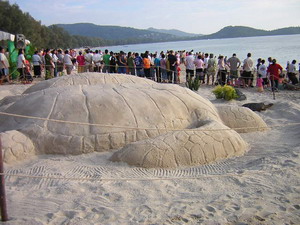 あのパレードは、プーケットだけではなく、タイのほかの地域からも参加する人が多いらしいです。どうもトランス状態で「行かなければ〜!」という気になるとかで、オカルトっぽいなぁ〜と思います。しかし、串だけでなく、電話線を通したり、笛とか通したりしてる人もいるので、遠くから見てみたいなぁとは思います。