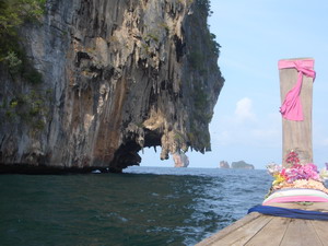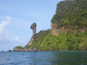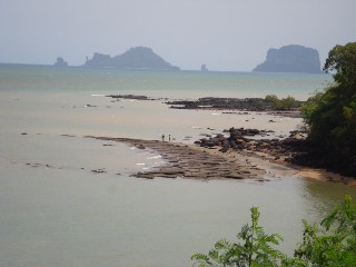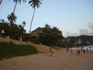 | ●クラビーってどんなところ? プーケットから車で約3時間。クラビまで行ってきました。 お隣のパンガー県を通っていくのですが、パンガーに入ったあたりから、プーケット島内では あまり見られない、どーんとそびえる岩がぼこぼこと見えてきます。緑も青々と茂っていて、のど か〜な雰囲気を感じることができます。 クラビで、気になったのがサムロー(三輪)型のバイクタクシー。1台に4人ぐらいまで乗れます。 屋根も付いてます!プーケットではほとんど走ってませんよね〜。 クラビは通常のバイクタクシーより、サムロー型の方が主流なようでした。これがほんとに便利。 ホテル見学時になかなか重宝しました。 パワーはあまりないけれど、アオナン内を走るなら 充分。料金は1人アオナン内なら20バーツ! お手頃で乗り心地も良かったです。プーケットにも走ればいいのに・・・。 クラビは全体的に素朴で、派手さはあまりないけれど、どこか落ち着く雰囲気があります。 最近はプーケットの後にクラビへ移動する人も少しずつ増えてきているので、これから人気が 出てくるのではないでしょうか。 BY きんちょ 今回僕は生まれて初めてクラビ県に行きました。そしていつも一緒に働いてるスタッフ全員、 運転手のチャイさんと一緒ということで凄く新鮮でした。 クラビー県の先入観としましては、「観光地」、「リゾート」、「ピピ島もクラビ県」等であとはなーん となくプーケットに似てるのかなぁなんて思っていました。 宿泊したのはアオナンビーチ。ここももちろん旅行者向けのお店が沢山並んだビーチで 高級なホテルが沢山あるビーチです。しかし最初に一人でビーチ通りを歩いた感想はのんびり、 プーケットでいうとカタ、カロンみたいな感じだけどもっとローカルな匂いが漂うビーチ。 そして断崖絶壁の岩肌がいたる方角に見えてダイナミックな自然。 そして静か。。夜もちらっと街を歩いてみましたら22時過ぎにはビーチ通りのお店は閉まりかけて いました。アオナンビーチはこのビーチ通りのお土産屋さんの間を中へ進んでいくとビアバーが 並んでいるんです。しかしこれもパトンのビアバーみたいに大音量ではなく丁度良い感じで レゲエやロックが流れています。 そうです、一日を通してゆっくりと時間が流れた気持ちいビーチでした。 しかし5月ということでクラビもオフシーズン。乾季にはやっぱアオナンは欧米人で賑やかな街に なるそうです。 夜のみんなとの食事は海辺のシーフードレストラン。ビックリするくらいタイ人率が高かったです。 これもタイの連休と重なっていた影響かと思われますが料理はとても美味しく満腹になるまで 頂きました。 二日目、午前中はクラビを代表するアイランドホッピング、午後からの予定もありパッケージ ツアーではなくロングテールボートチャーターで船の運転手と二人きりで行ってきました。 クラビ特有の地形と自然、この時期でもたくさんの魚を見ることができました。 このボートチャーターについてはまた詳しくご紹介します。。 午後からはみんなとクラビタウンツアー。スサンホイ(貝の化石)海岸、タイガーケイブ寺院等を 回り夕食を食べてプーケットタウンへ帰宅という感じだったんですが、このタイガーケイブで は皆とは別行動。僕とさくらこさんの長男M君の二人はこの寺院のビューポイントへと向かい 全ての時間を費やすことに、、。 1237段の階段を登り、クラビタウンの壮大な自然、樹林、岩肌、街を眺めてまた1237段の 階段をおり、自分の体力のなさを思い知らされましたが、こちらも詳しくは別枠に。。 総評しましてもまた必ず来たいと思うような素晴らしい街、自然、リゾート地でした。 今回は一泊でも内容はとても充実してましたが、是非何泊かして ゆったりとクラビーを満喫というのもやってみたいですね。 今後もピピ島&クラビ情報ブログにアップして街の様子などもご紹介していきますので よろしくお願いします。 BY JAJA ==================== ●アオナンビーチ クラビで最も観光客が多く、賑やかなのは「アオナンビーチ」です。 雰囲気は、プーケットのパトンビーチに似ており、ビーチ沿いの通りには、お土産やさんや レストラン、コンビニ、マッサージ屋さん、ツアーカウンターなどが並んでいます。 ビーチ通りの繁華街は、大体1キロ程度だと思います。 この通りから、ビーチはちょっと下るような形になっています。 サンセットの時間帯に、ビーチを散歩してみましたが、ビーチチェアーなどは全くなく、 とても素朴な感じがしました。ビーチを縁取るのは、クラビーの風景には欠かせない、 小高い緑の山々です。 夕日は、海面には落ちず、ビーチの端っこの林のほうに落ちていきます。 この時間帯は、地元の人や、観光客もたくさんサンセットを楽しみに、ビーチに出ていました。 ビーチの目の前には、いくつかのホテルのレストランやバーが 高床式のような形で作られています。 クラビーリゾート