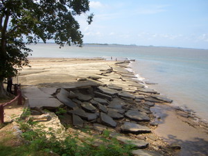 (写真左)ポダ島から見える景色 (写真右)貝の化石