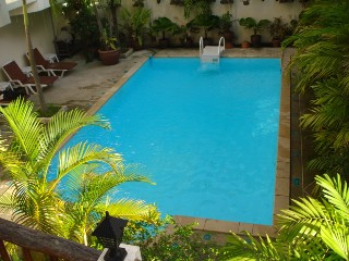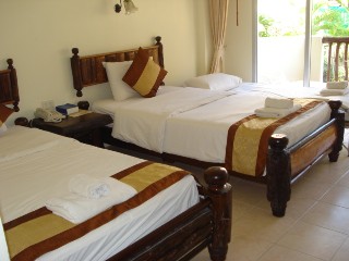 ◆◆ アオナンサンセットホテル ◆◆ Ao Nang Sunset Hotel詳細 アオナンビーチの繁華街の中心にある「アオナンサンセットホテル」。このホテル選びには、 ちょっと時間を費やしました。 クラビにあるホテルをいくつも吟味して、値段的にリーズナブルで、でも清潔感があって、 繁華街の中心にあって、部屋がそこそこ広さがあって・・・と、いろんなHPを見たり、地図をみたりし て決定したのですが、期待を裏切らない、良いホテルでした。 場所は、アオナンビーチの、ノッパラットタラビーチ側。 ノッパラットタラビーチまでも、歩いて15分ぐらいで行けます。周りはお土産やさんや コンビニ、マッサージ屋さん、レストラン、テーラーなどなど、お店がずらりとならんでいます。 ビーチへは道を挟んですぐです。クラビリゾートというホテルの斜め向かいにあります。 外観は、マンションといった感じです。 4階建ての4つの建物からなっていて、全室44部屋というこじんまりしたホテルです。 4階ですが、エレベーターもついていますし、小さいですがプールもありました。 一階にあるロビーの上はマッサージ屋さんになっており、ロビーの隣には、 7:00−22:00 オープンの NANA レストランがあります。繁華街に面しているため、 ホテル以外のゲストの利用も良くあるということです。オープンエアースタイルで、 開放的な感じです。 お部屋のほうは、全てがスーペリアルームになっています。 太い木目調というか、リゾート感のある、可愛らしい装飾です。 AONANG SUNSET HOTEL 268 M.2 Ao-nang Beach, Krabi 81000, Thailand. |