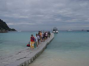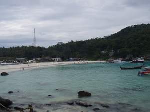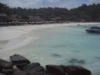 到着します。ラチャ島の砂は、真っ白で、海とのグラデーションがたまらなく美しいです。