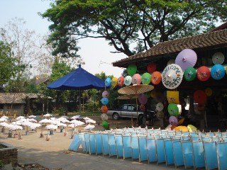 チェンマイの工芸品がたくさん売られている、「ボーサーン」