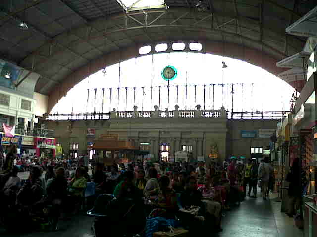 バンコクのホワランポーン駅。電車の出発待ちの人が、たくさん。