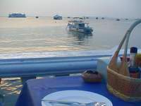 店の奥へ入ると、海にせり出すようになっていて、海の上で食事をし