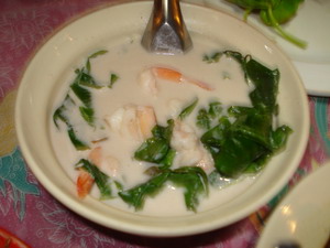 トートマンクン(海老のすり身の揚げ物)、ココナッツスープ、