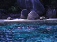 6:00−30 ホテルへのお迎え 8:00 船会社オフィスにて待合(お茶やコーヒー有) 8:30 ボート乗場を出発、シミラン群島を目指します。 10:00 バンウー島(第9)でのシュノーケリング 11:30 シミラン島(第8)でのランチタイム、ビーチ でのリラックス、シュノーケリングなど 13:00 ミアング島(第4)でのシュノーケリング 14:00 パーユー島(第7)でのシュノーケリング 15:00 島を出発、パンガーのボート乗場を目指します。 16:30 船着場に到着、各ホテルへの送迎 |